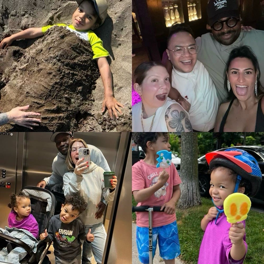 Anyway, my bob and I have been enjoying the beginnings of summer, I got a new tattoo, and Toronto has been delivering very hot and humid days, with sunsets after 8 pm and a tougher time convincing the kids to go to bed. Hudson has been begging me to get my bike fixed so we can ride together, (it’s been parked outside of our condo since the winter and needs some major TLC) and we’ve already had one beach day together where I played with them in the sand, dipped our toes in the water and reapplied my SPF whilst reading under an umbrella. I danced at a margarita club for my friend’s birthday, and taught Stella hopscotch.